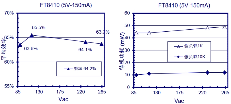 FT84xx系列芯片在效率方面表現(xiàn)出色。以FT8410為例,在不同輸入電壓下,其效率均能達(dá)到60%以上,最高可達(dá)70%。這種高效率意味著在將交流電轉(zhuǎn)換為直流電的過(guò)程中,能量損失極小,能夠有效減少能源浪費(fèi),降低設(shè)備的運(yùn)行成本。同時(shí),該芯片的功耗極低,僅為10 - 50mW,這一特性使其在待機(jī)狀態(tài)下幾乎不消耗能量,極大地延長(zhǎng)了設(shè)備的使用壽命。